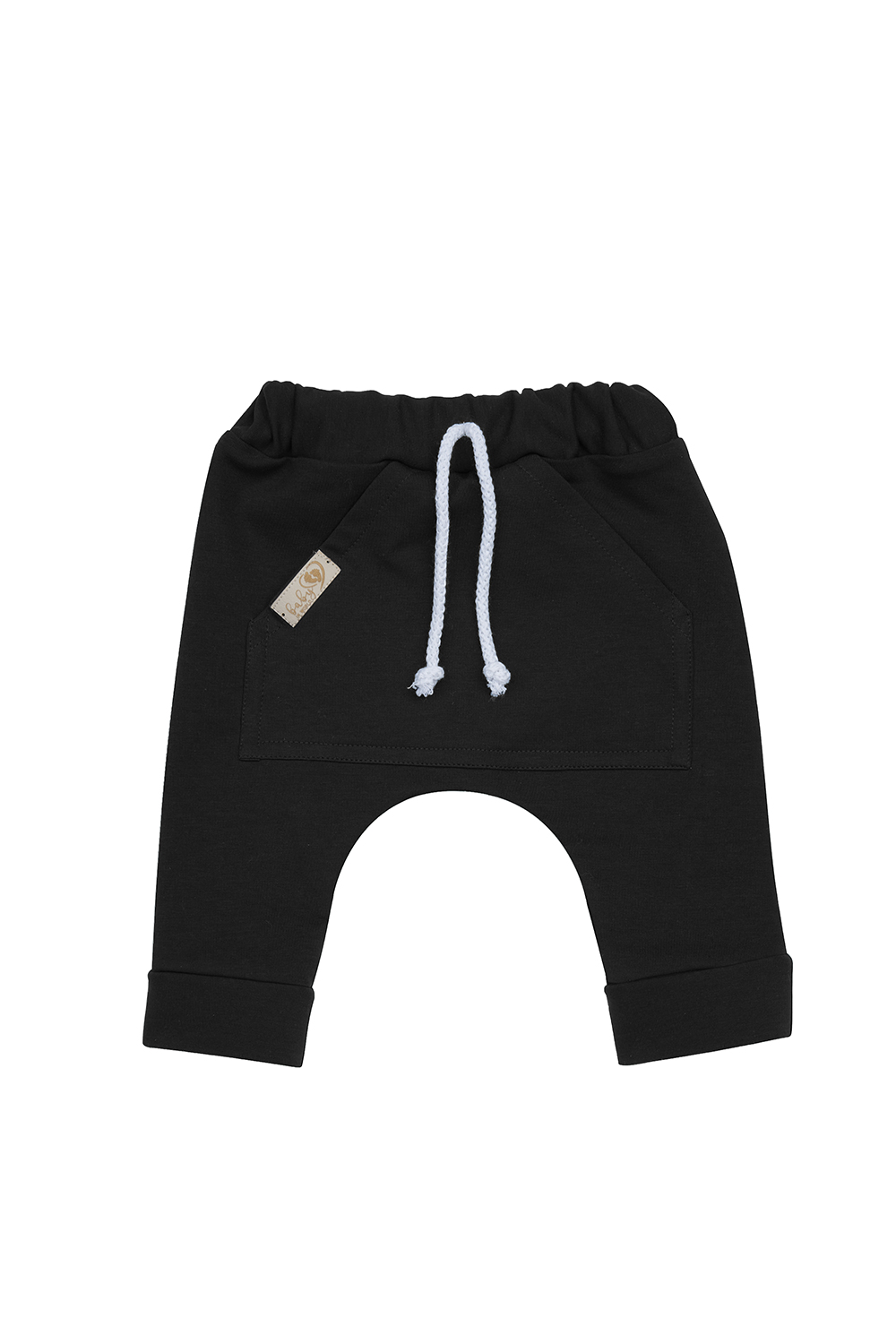 Bawełniane spodnie wykonane z dresówki drapanej, bardzo wygodne i przyjemne w dotyku; z duża, ozdobną kieszenią z przodu.