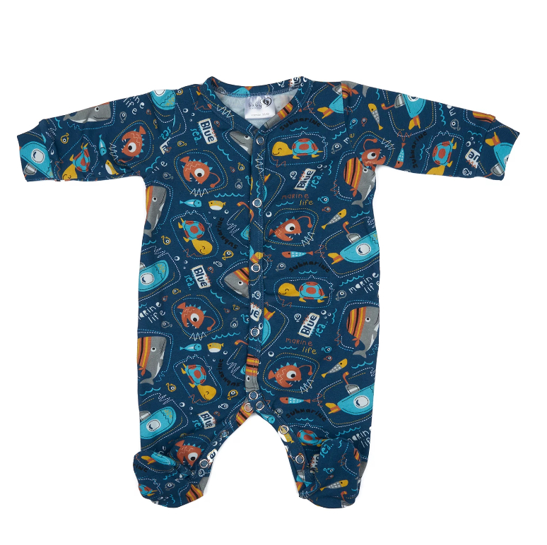 Pajac niemowlęcy w chłopięcy wzór. Stworzony z delikatnej i wygodnej bawełny, zapewnia maluchowi wygodę i swobodę ruchu za równo w czasie snu jak i codziennych zabaw.