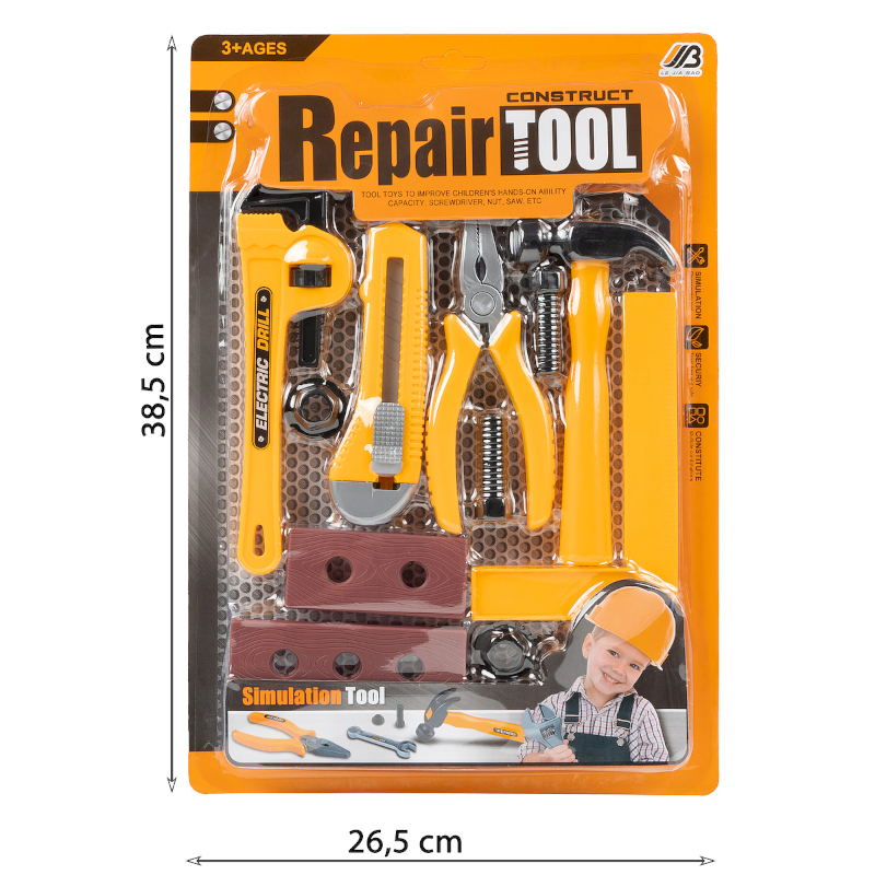 ZESTAW NARZĘDZI NA BLISTRZE Zestaw narzędzi to interaktywna zabawka stworzona dla dzieci, naśladująca prawdziwe narzędzia używane przez dorosłych majsterkowiczów. Zazwyczaj wykonany z bezpiecznych materiałów, takich jak plastik, aby zapewnić bezpieczeństwo podczas zabawy. Zestaw narzędzi jest doskonałą zabawką dla małych majsterkowiczów, rozwijającą ich zdolności manualne i kreatywność. Zapewnia bezpieczną i edukacyjną zabawę, umożliwiając dzieciom naśladowanie dorosłych i rozwijanie umiejętności konstrukcyjnych w bezpiecznym i kontrolowanym środowisku zabawowym.