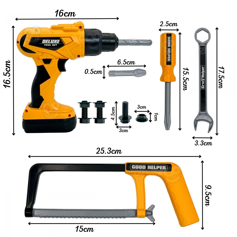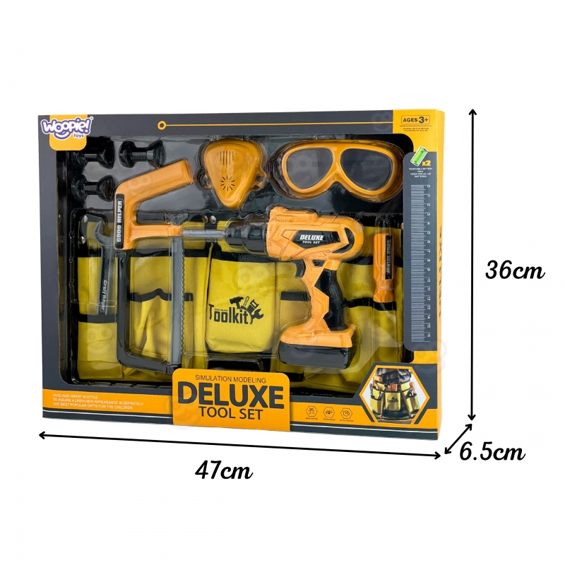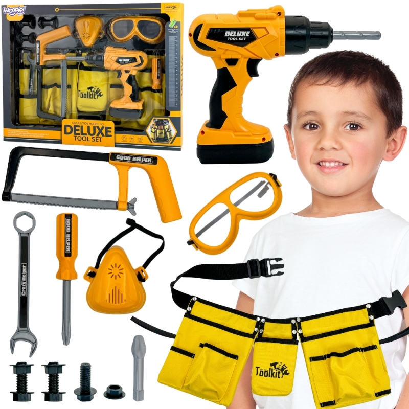 Zestaw Narzędzi Małego Majsterkowicza marki WOOPIE to kompletny zestaw narzędzi do zabawy w budowę:, okulary ochronne, pas na narzędzia, wkrętarka zasilana bateriami oraz narzędzia i elementy konstrukcyjne pobudzają wyobraźnię i zachęcają do twórczej zabawy w majsterkowanie. Realistyczne efekty zabawek oraz solidne dodają autentyczności i zapewniają długie godziny zabawy.