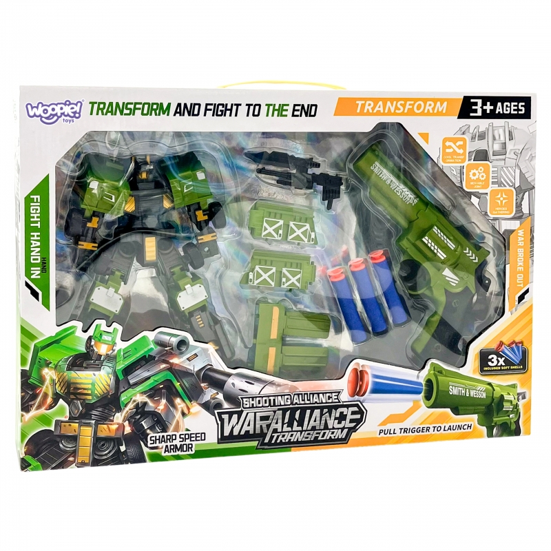 Przenieś się w sam środek ekscytującej akcji z Robotem Bojowym od Woopie! Ten dynamiczny zestaw to idealna propozycja dla małych strategów i miłośników kosmicznych potyczek. W jego skład wchodzi potężny robot, który z łatwością transformuje się w pojazd bojowy, a także rewolwer z bezpiecznymi pociskami, gotowy do natychmiastowego starcia.Przygotuj się na niezliczone godziny kreatywnej zabawy, odgrywając epickie bitwy i rozwijając swoje umiejętności strategiczne. Czas na transformację i walkę do samego końca!